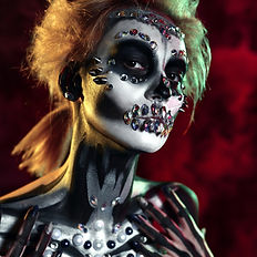 Makeup for Halloween or cosplay is the art of using cosmetics and special affects to transformation one's appearance into a character, often from TV shows, comics, or movies. It involves techniques like contouring, shading, and using prosthetics or special makeup products to achieve the desired look.
